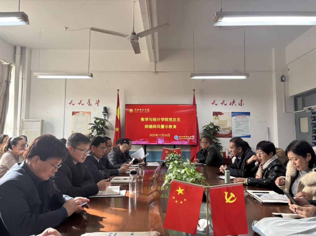 11月26日,数学与统计学院党总支在学院会议室开展师德师风警示教育活动,学院全体教职工参加,学院党总支书记苟建超主持会议。