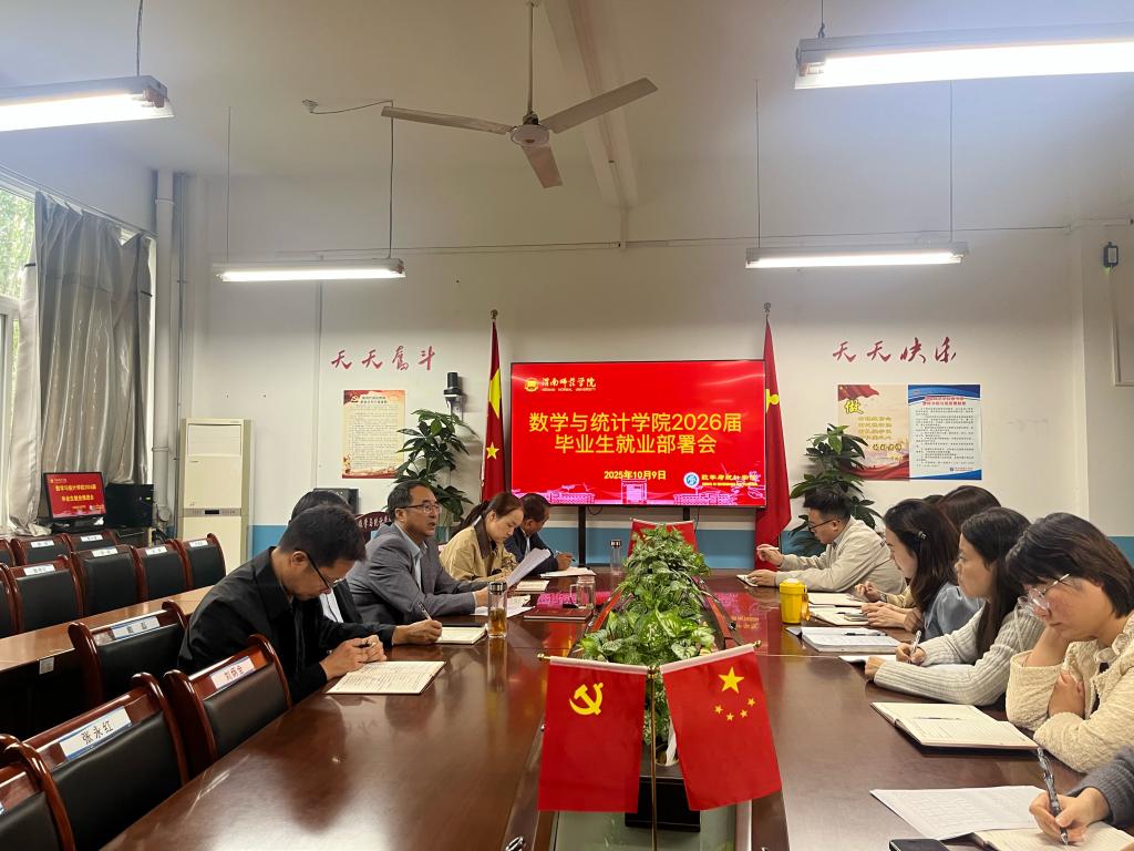 10月9日,数学与统计学院在2318会议室召开2026届毕业生就业工作部署会。学院全体处科级干部及行政人员参加会议,会议由学院党总支书记苟建超主持。