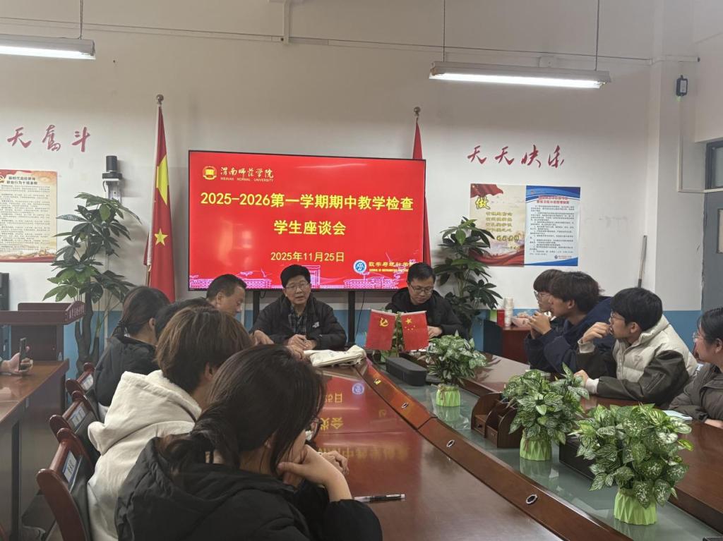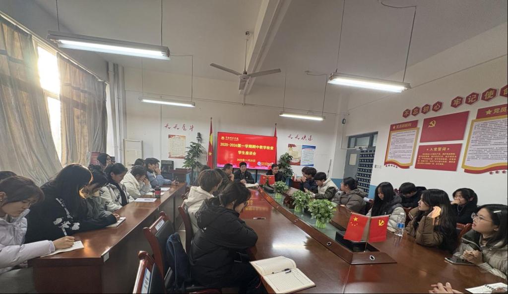 2025年11月25日下午,数学与统计学院在2318会议室成功召开2025-2026学年第一学期期中教学检查学生座谈会。会议由副院长戴磊主持,薛利敏、赵小鹏、董晓萌、刘炳全等教师代表与各年级学生骨干共同参与,旨在搭建师生沟通桥梁,聚焦教学实际问题,共商提升教学质量之道。