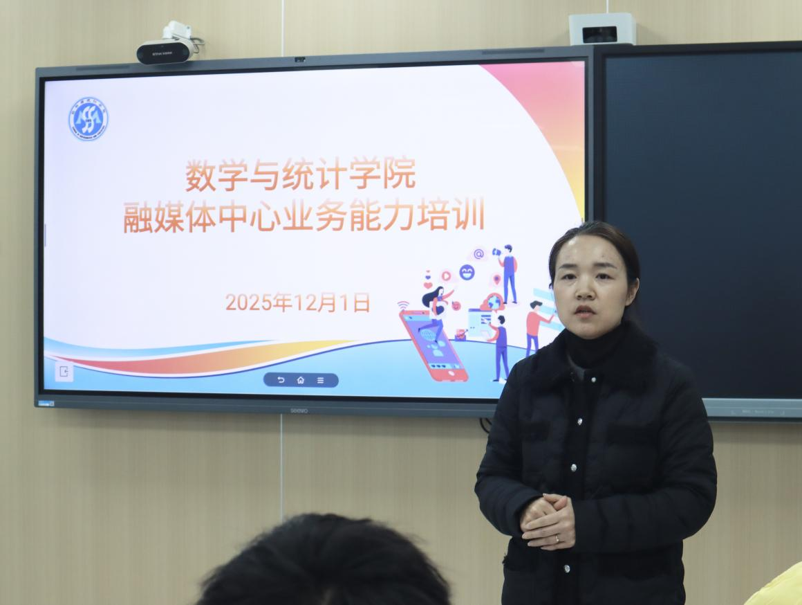 12月1日晚,数学与统计学院在2317教室举办融媒体业务能力专题培训会,特邀学校党委宣传部教师于占豪担任主讲,学院党总支副书记张小苗、融媒体中心负责人晏小雪及中心全体工作人员一同参与学习。
