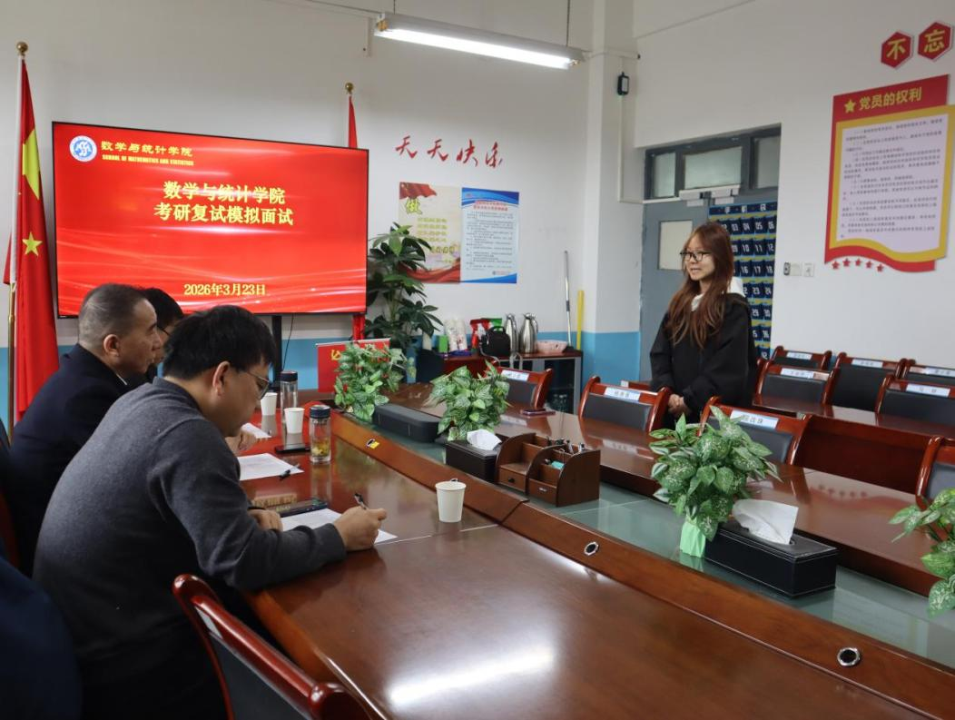 春山可望,研途逐光。考研复试在即,为切实帮助考研上线学生夯实复试基础、提升应试能力,数学与统计学院精心策划、周密部署,多措并举开展考研复试专项指导工作,通过“座谈问需、导师结对、模拟实战、专业辅导”四位一体模式,全方位为考研上线学生保驾护航,助力学生顺利“上岸”。