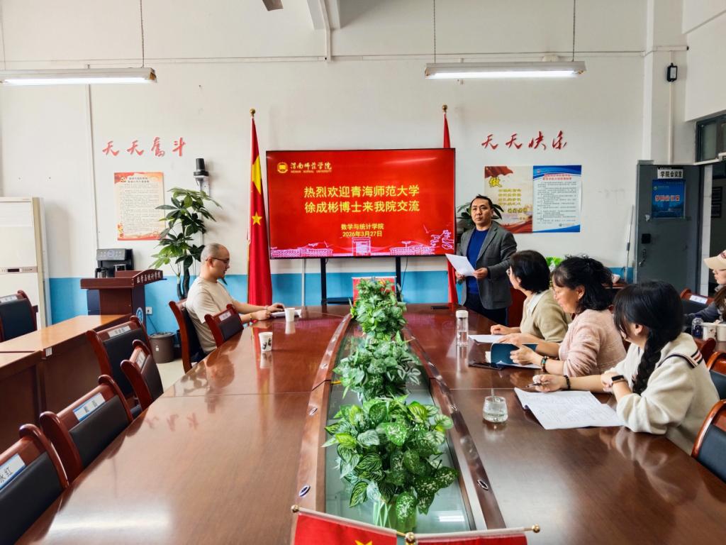 3月27日下午,我院特邀青海师范大学数学与统计学院徐成彬博士访问交流,我院微分方程团队相关博士、青年博士、在校学生参加了报告会。会议由学院副院长赵教练主持。