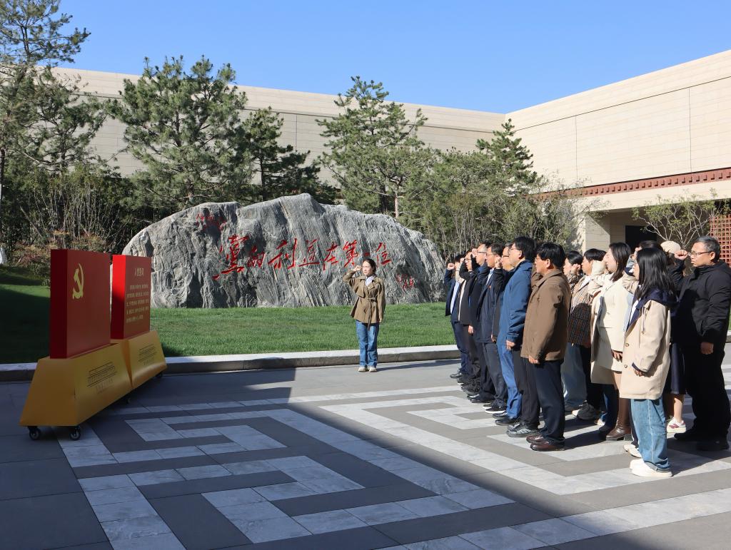 参观结束后,全体师生党员在纪念馆红色教育阵地整齐列队,面向鲜红的党旗,高举右拳、齐声宣誓,共同重温入党誓词。铿锵有力的誓言响彻现场,既是对革命先辈的深切致敬,也是对入党初心的庄严回望,更是对使命担当的郑重承诺,进一步锤炼了党性修养,强化了全体党员的责任意识、宗旨意识和使命意识。